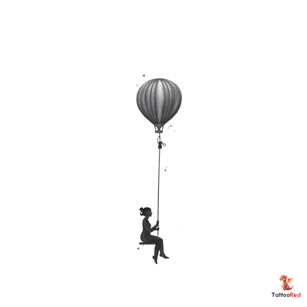 a Person sitting on a swing hanging from a hot air balloon