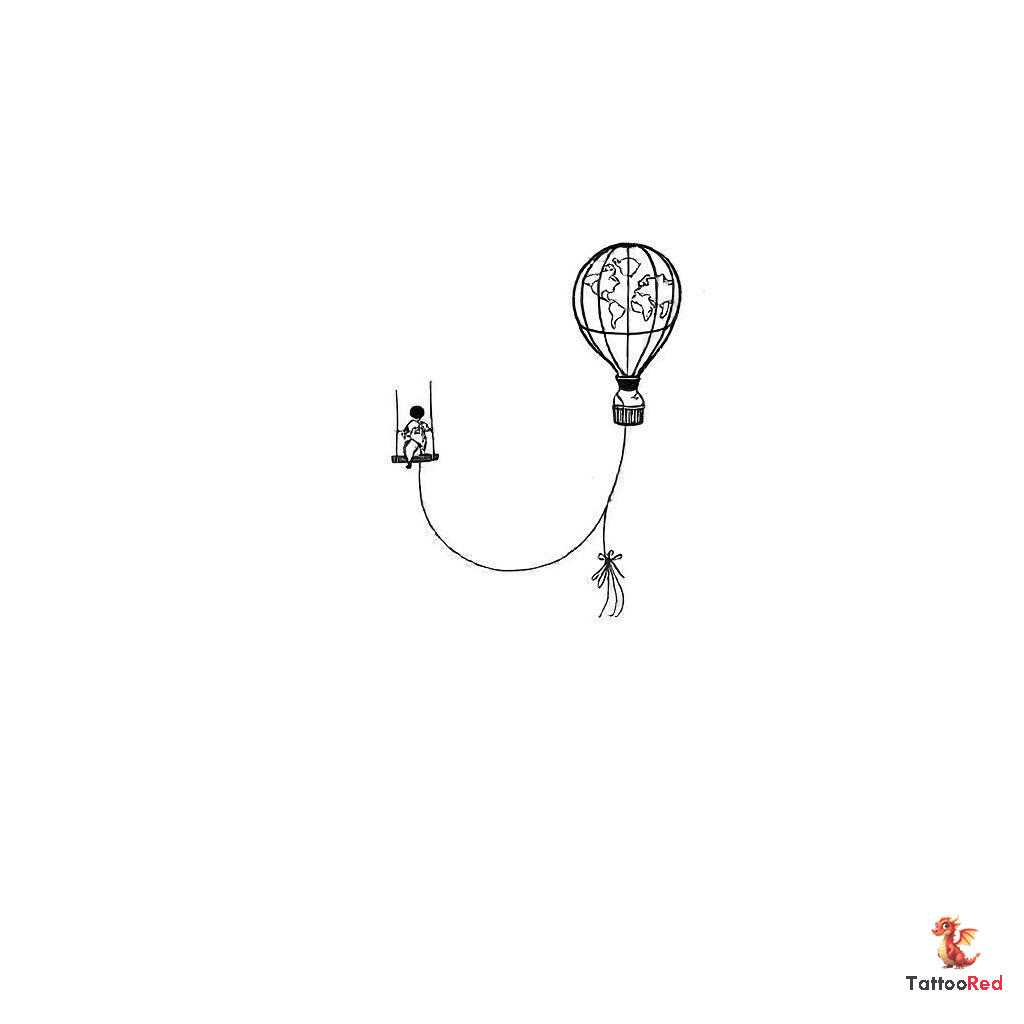 A small, elongated hot air balloon with a tapered base, featuring a swing instead of a basket. Insid