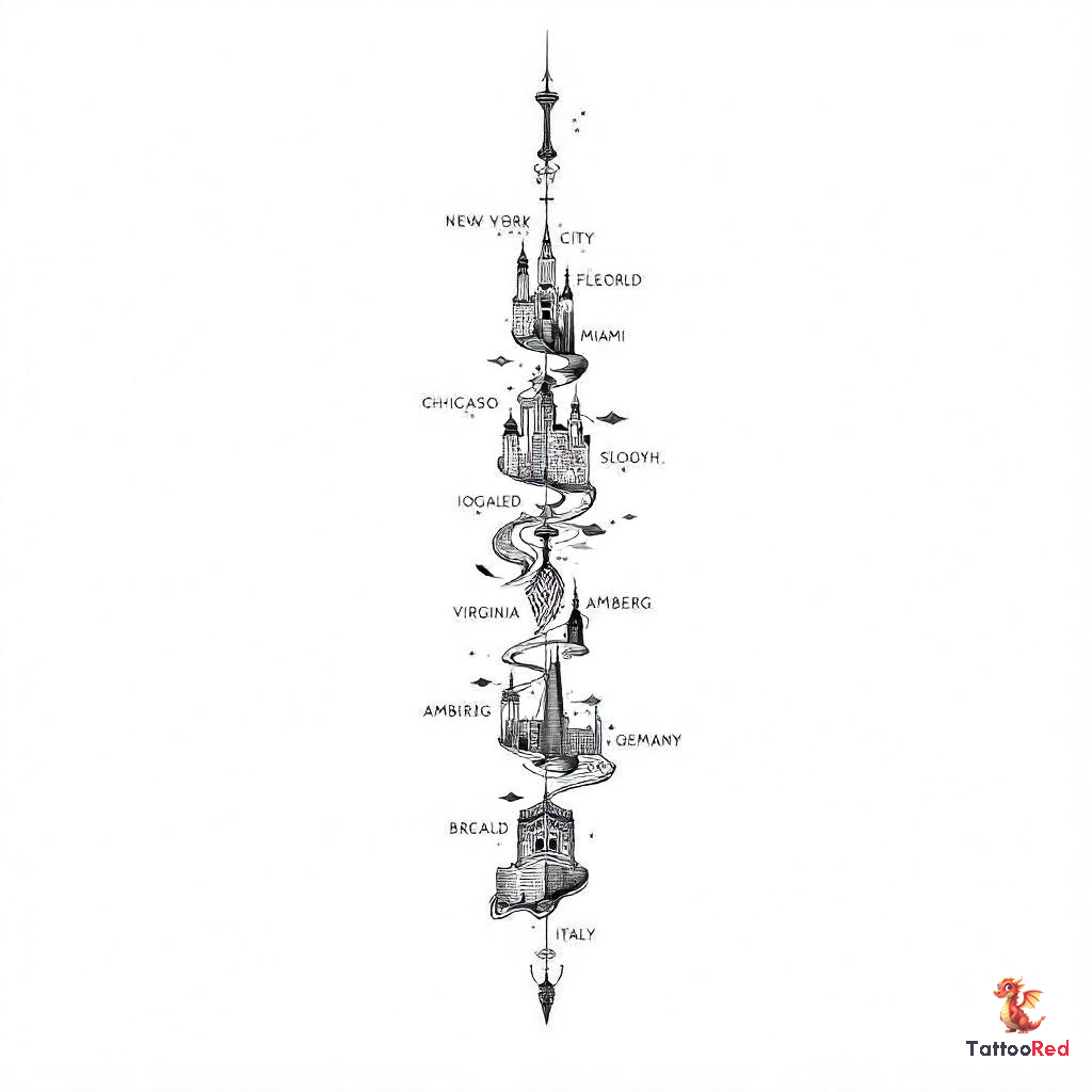This tattoo is ideal for those who appreciate travel and the stories behind each city. It serves as a personal reminder of adventures and the people encountered along the way. Whether you’re a seasoned traveler or someone who cherishes memories of specific places, this tattoo offers a unique way to express your journey.