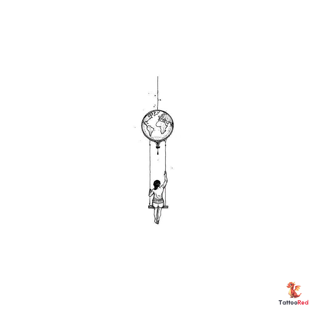 Create a minimalist, fine-line black ink tattoo design featuring a surreal and symbolic scene: A per