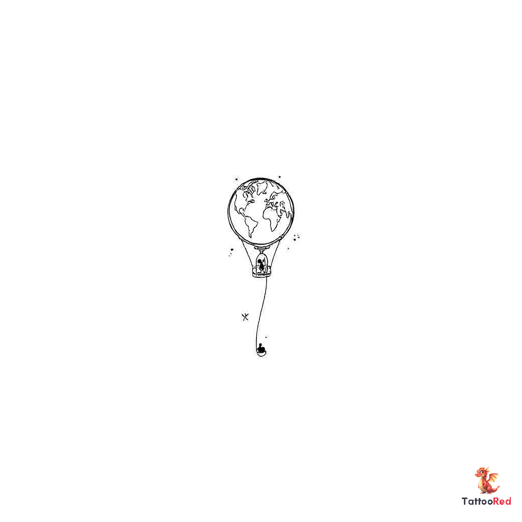 Delicate small tattoo design of a hot air balloon with a very simplified world map inside the balloo