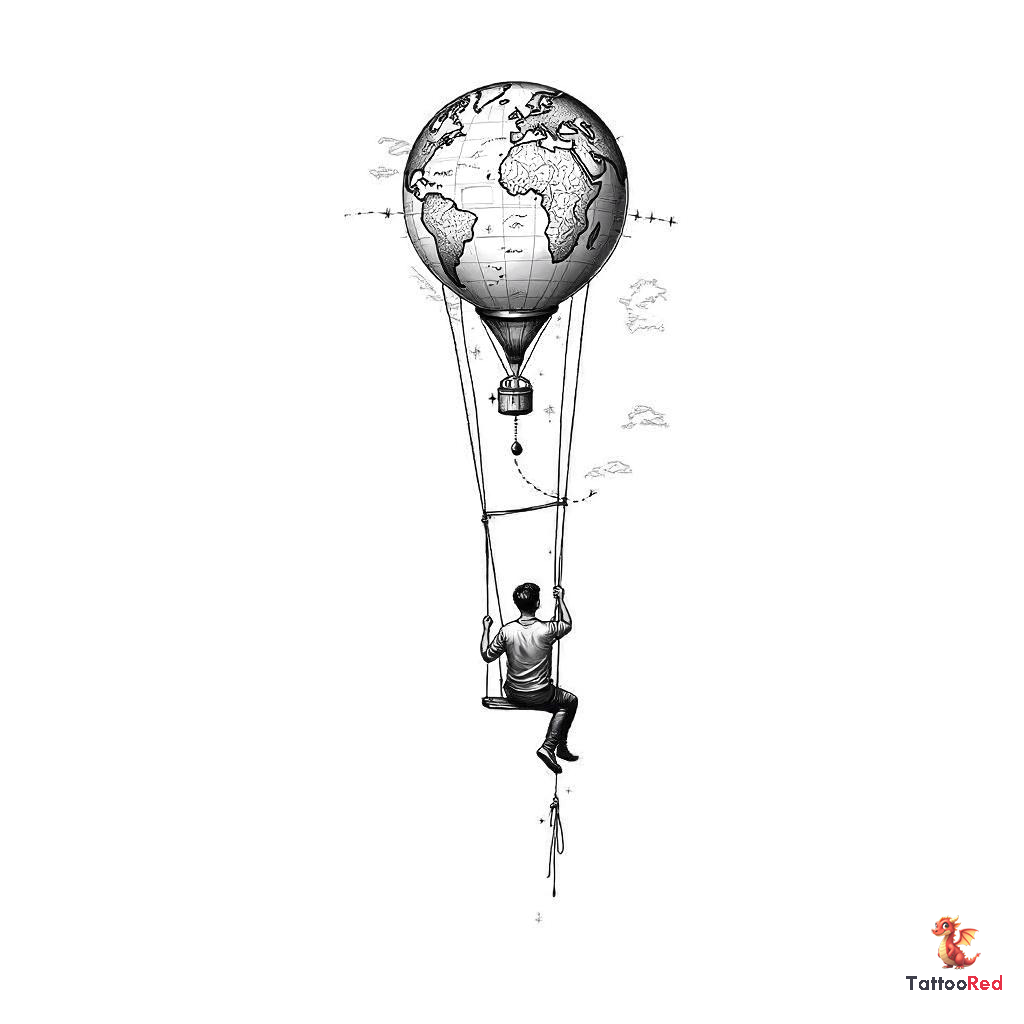 Design a highly detailed, black-and-white tattoo inspired by the concept of a person sitting in a sw
