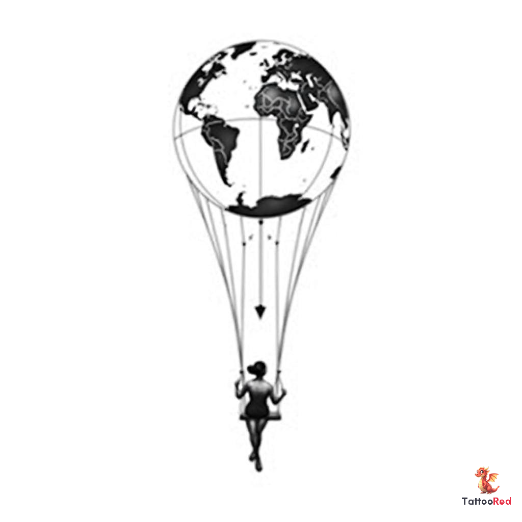 Design a highly detailed inspired by the concept of a person sitting in a swing attached to a hot ai