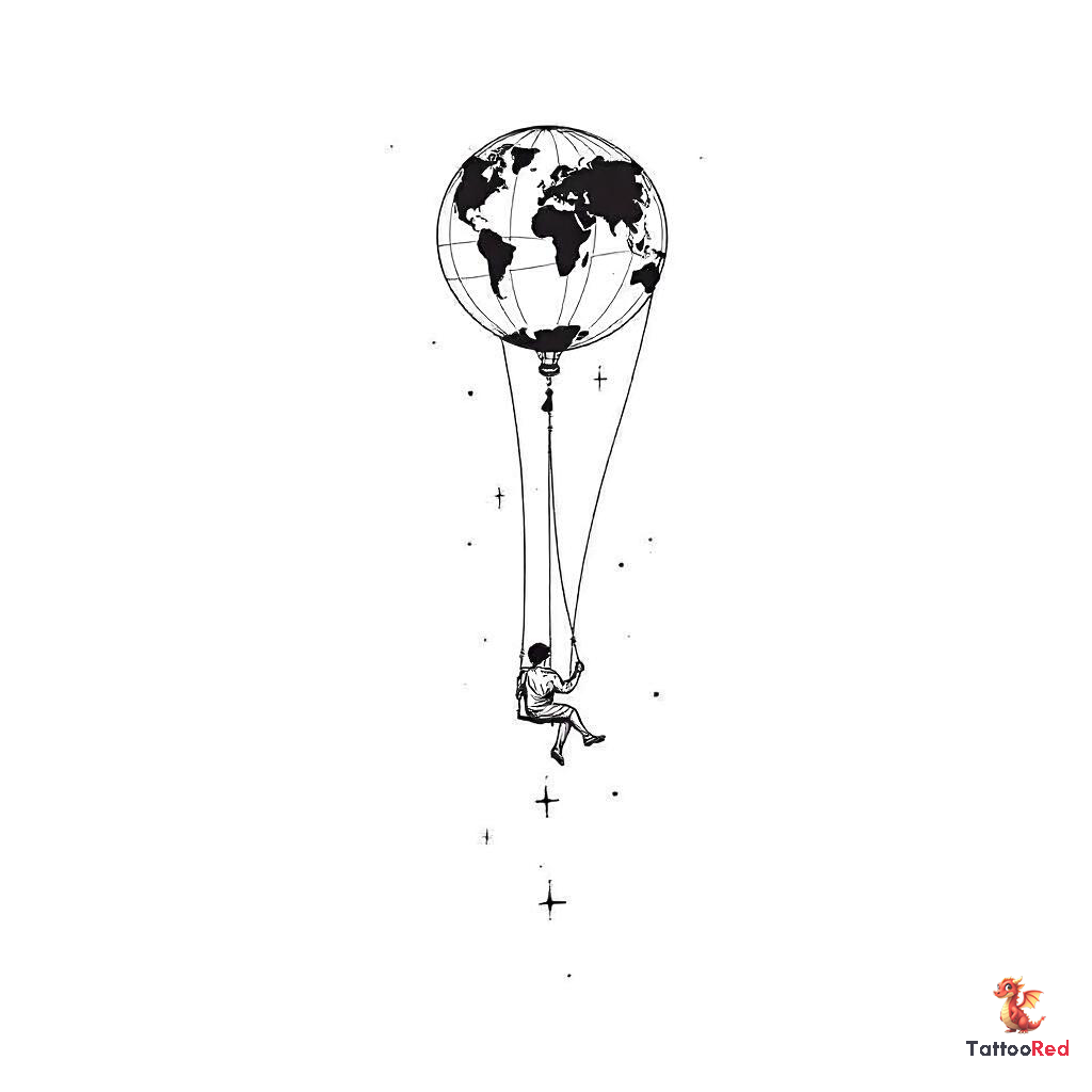 inspired by the concept of a person sitting in a swing attached to a hot air balloon. The balloon sh
