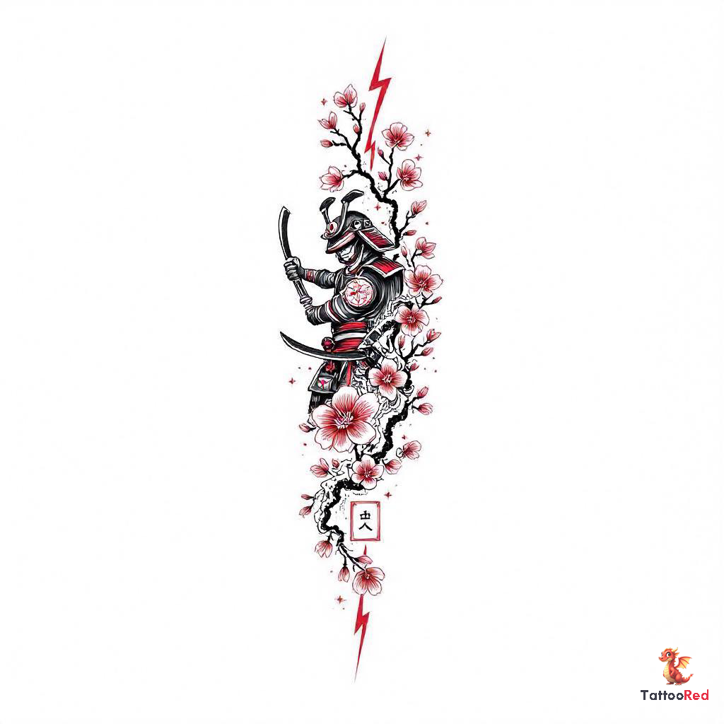In conclusion, this Japanese arm sleeve tattoo featuring a samurai, lightning bolts, and cherry blossoms is a stunning representation of traditional art that carries deep symbolic meanings. It is an invitation to embrace both strength and beauty in one’s life journey.
