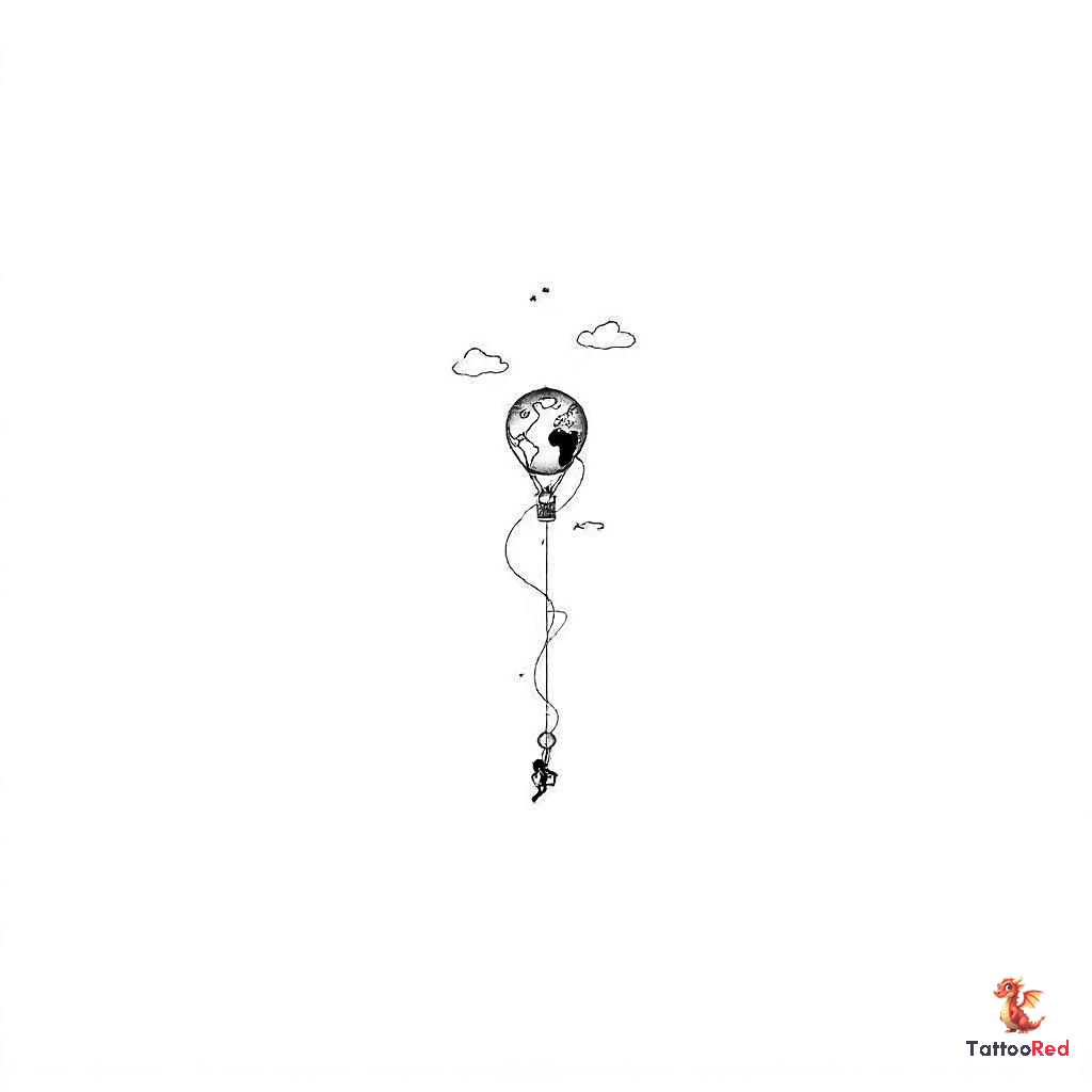 Minimal micro tattoo of a hot air balloon europe map, ultra simplified oval balloon, smooth continen