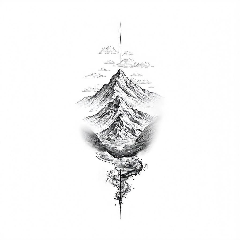 In terms of placement, this tattoo is typically ideal for the back or chest. These areas provide ample space to showcase the intricate details of the design, allowing it to be appreciated fully. The back can serve as a canvas, where the mountains can stretch and rise, while the chest allows for a more intimate connection with the design, making it feel like a part of the wearer’s personal story.