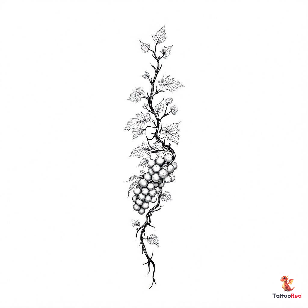 Tattoo enthusiasts often choose to have nature-themed tattoos as a way to reflect their appreciation for the environment or to signify growth and resilience. Grapevines, in particular, symbolize abundance, fertility, and prosperity. They are often associated with the vine's ability to thrive in various conditions, representing adaptability and strength. This tattoo can serve as a personal reminder of one's ability to flourish, no matter the circumstances.
