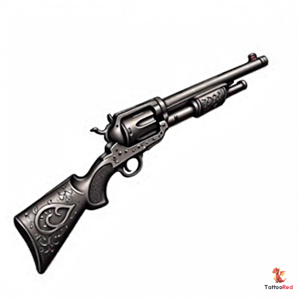 The realistic portrayal of the gun highlights its metallic textures, offering a lifelike representation that draws the eye. Every detail, from the polished barrel to the ornate engravings on the handle, is meticulously crafted. This attention to detail not only enhances the tattoo’s visual impact but also imbues it with a sense of history and significance. Guns often symbolize strength, protection, and sometimes rebellion, making this tattoo a powerful personal statement.