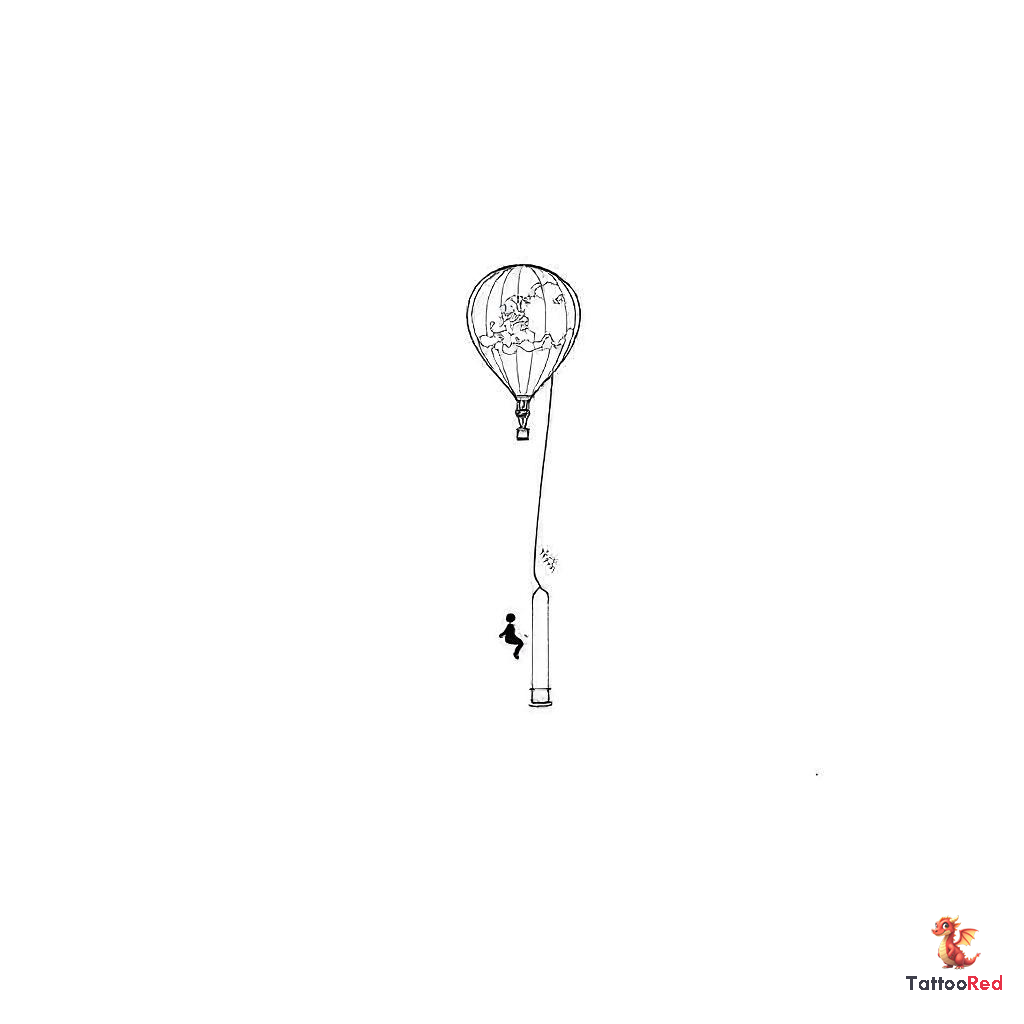 Slender elongated hot air balloon with a narrow pointed lower end, featuring a small swing suspended