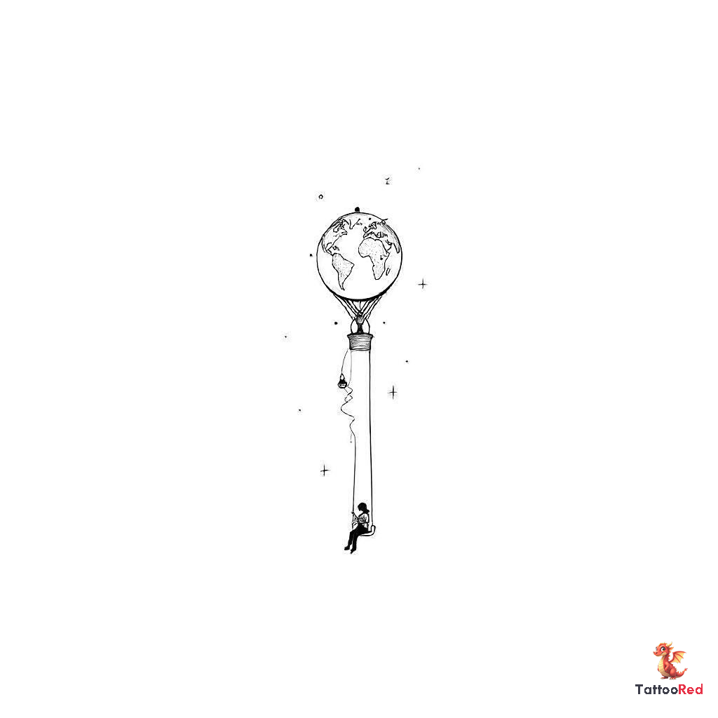 Small long shaped hot air balloon wiht a tapered bottom with a simplified world map inside the ballo