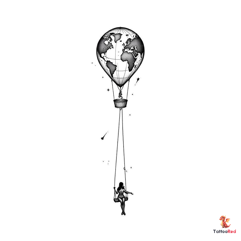 Small long shaped hot air balloon wiht a tapered bottom with a simplified world map inside the ballo