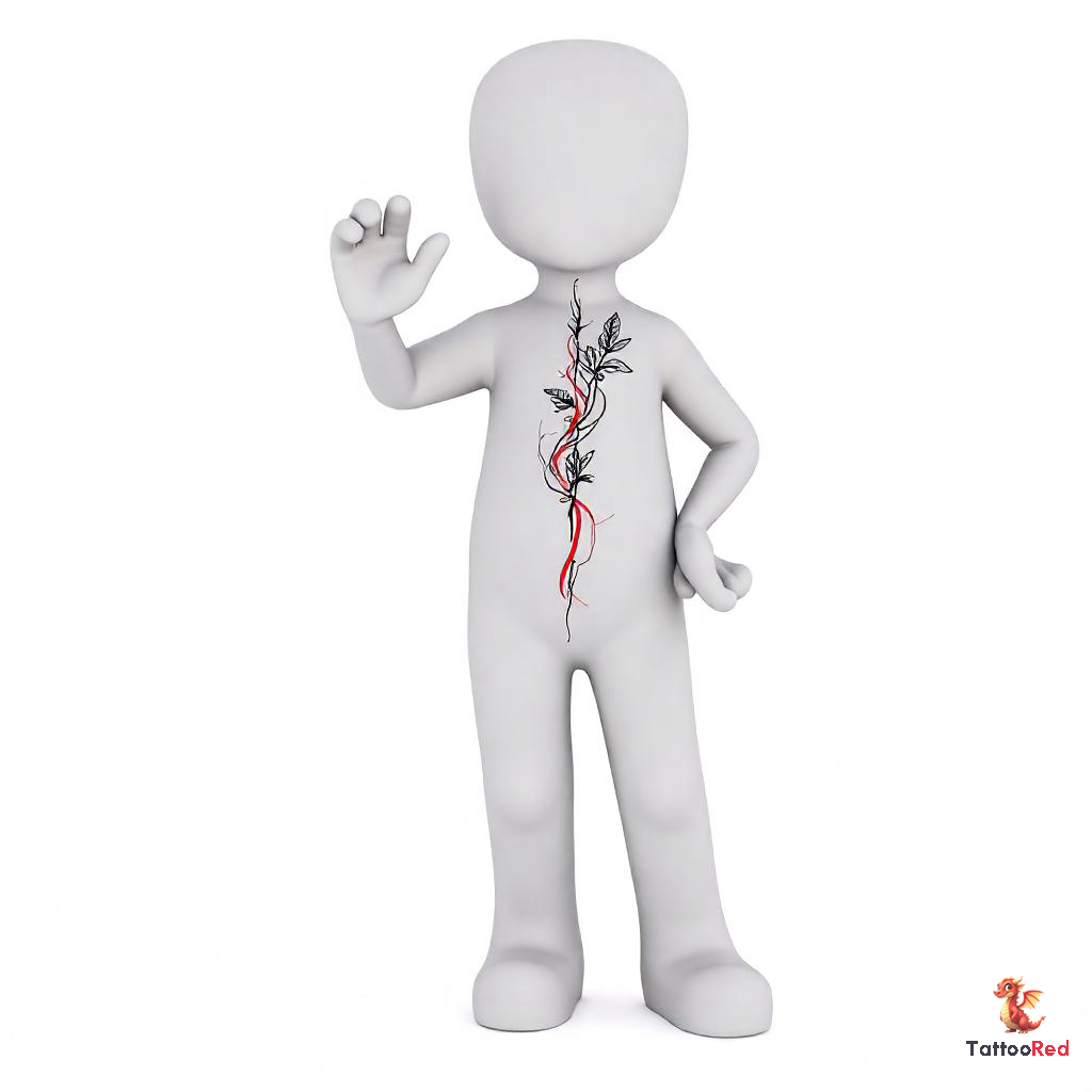 The design’s flowing lines symbolize growth and transformation, embodying the essence of nature as it weaves through personal stories and experiences. Each curve and twist can represent different life journeys, making this tattoo not just a piece of art, but a narrative etched onto the skin. The red accents can signify passion, love, or even the vibrancy of life itself, enhancing the overall emotional impact of the design.